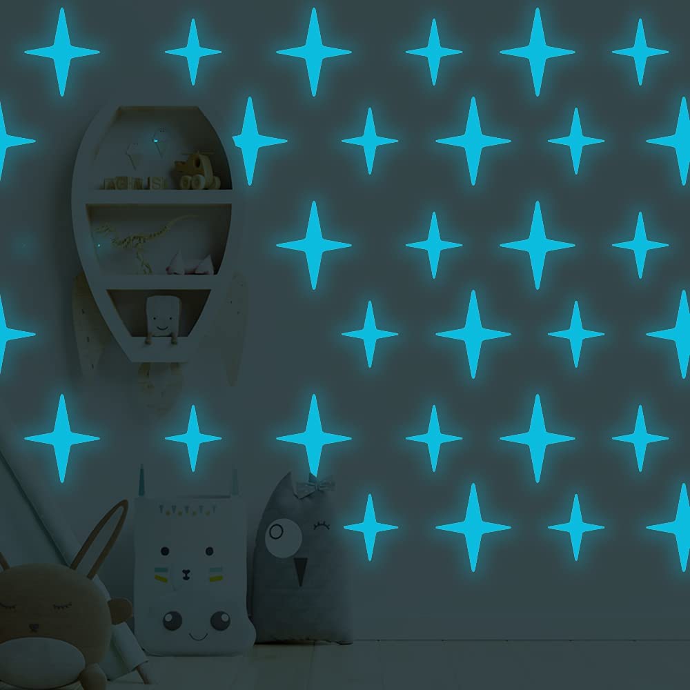 funlife 2 Sheets Glow in The Dark Star Stickers, Peel and Stick Glowing Luminous Wall Sticker, Blue Fluorescent Stars Ceiling Decals for Kids Nursery Bedroom Decor