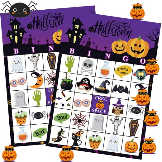 Halloween Bingo Card Party Game Set:package Includes 24 unique kids bingo player cards, 385 marking chips, and 2 caller chips.Support members to pl…