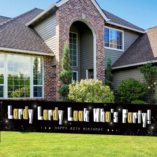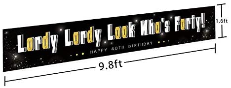 Funny 40th Birthday Banner, Lordy Lordy Look Whos Forty Yard Sign, Black and Gold 40 Birthday Party Decorations (9.81.6 feet)
