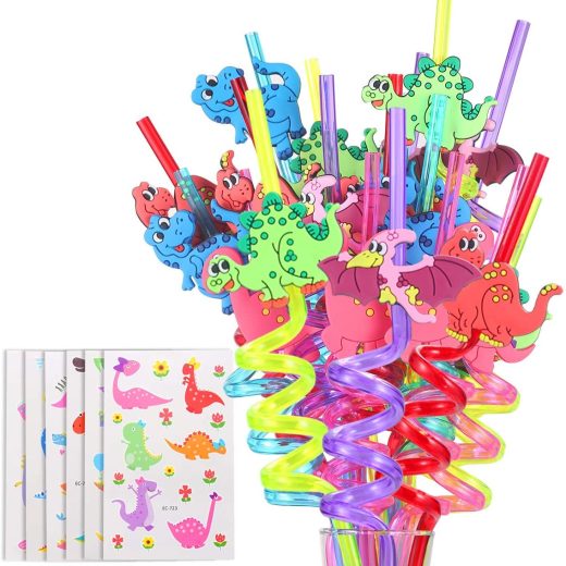 ROARRR! Our rainbow Dino birthday supplies set INCLUDES 24 SET Reusable Dinosaur Drinking Straws + 6 SHEETS (56 TATTOOS) colourful dinosaur tattoos,Great for birthday as party favors and party supplies. Kids of all ages love them, especially girls aged 3 to 10 years old. SAFE & NON-TOXIC:Our drinking straws and tattoos are safe for your little ones.The tattoos can be easily removed with baby oil, makeup remover or rubbing alcohol. The Perfect Size:each dinosaur drinking straws measures 10.5 inches tall [ 26.5cm ] + 0.23 inches diameter [ 0.58cm ] and 6.89” x 2/5” extra wide cleaning brush.Great length for mason jar, Tervis, Signature, Yeti, Rtic, S’well, Starbucks, 16oz 20oz 24oz 30oz Tumblers mug. Enough For the Whole Party:reusable dinosaur drinking straws have 6 different colors and design mixed in, each design of 4 pcs. super cute dinosaur tattoos featuring T design for Rex, Stegosaurus, Pterosaurs, Triceratops + Brontosaurus with super cute additional Dino Crossing and jungle volcanoes that kids will love! Instagram Friendly:The best product and service for you! You can get the refund for any reasons unpleasant,and we will be glad to receive suggestions from you too.