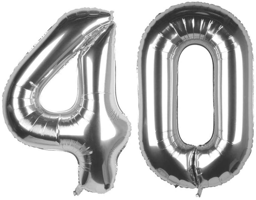 GAKA 40 Inch Silver 40th Birthday Number Balloons 40 Foil Mylar Balloon for Anniversary Party Decoration