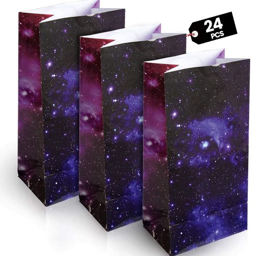 Galaxy Party Favor Bags – 24 Pack Paper Party Bags, Kids Goodie Bags for Birthday Party, Recyclable Paper Solar, Outer Space Theme Candy Treat, Gift Bag Supplies