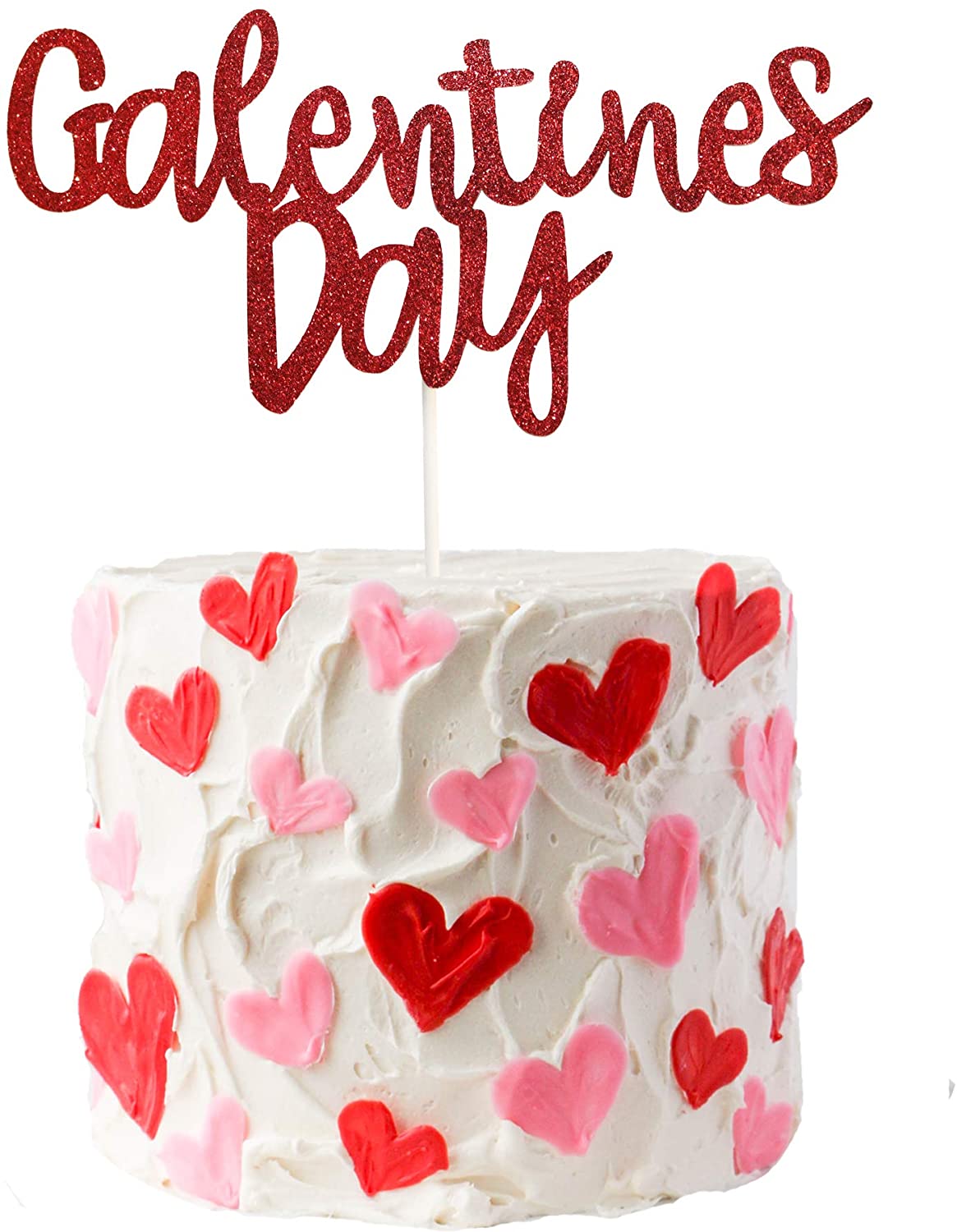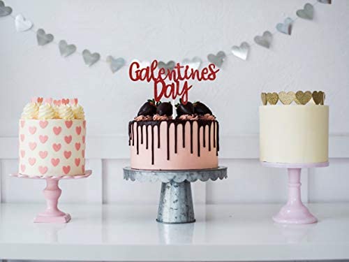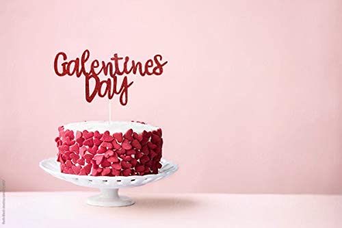 Galentineu2019s Day Cake Topper, Red Glittery Happy Galentineu2019s Day Party Decorations, Love Heart Cake Topper, Ladies Girls Galentines Day Cake Topper Photo Prop
