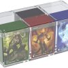 Your game is on my watch.“ – The convertible Watchtower combines deck box, accessories drawer and card holder in one elegant box. The card holder can keep up to 100 doublesleeved cards, protected by soft inner microfiber lining. The accessories drawer is perfect to house dice, tokens and other small items. INNOVATION: the Watchtower’s card holder can be flipped and works as a perfect card stack holder. This keeps your deck in perfect shape at the table and makes drawing cards even better.