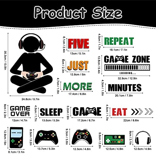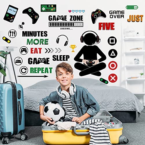 Plentiful Amount for Gamer Room :You will receive 4 sheets colorful gaming decals,each sheet aprox size is 11*14.17inch.Desined with various game patterns including classic gamer boy,game controller,game console,game component,game mouse,inspirational game words and more.Anyone who is a gamer would love to have this for their gaming space.Absolutely prefect addition to the gamer room decoration. Premium Material Made:The game wall decals are made of premium vinyl and pvc material,which is safe to use, reliable,durable,never fade,not easy to tear.These colorful gaming wall stickers can cling for aimed surfaces for years with the powerful backing adhesion.Also these cute gamer wall stickers are removable without any damage or residue leaves behind. Peel and Stick:The gamer room decor set is removable and easy to install.Just peel-stick-done.Even children can do it independently.These gaming wall decals will cling for the surfaces long times without peeling,wrinkling or fading. It can be applied to any smooth and clean surfaces, such as smooth wall, refrigerator, wardrobe, windows and doors.You could freely combine these gamer stickers with your own creativity. Wide Application:The video game wall decals are suitable for playrooms, game rooms, living rooms, nursery and any other places you want to create a enjoyable game wall art.The gaming controller wallpaper also can be a great present for your friends,kids or families.Our colorful gaming wall stickers can be mixed for instant stylize wall decoration and inspiration,not only light the blank walls,but also encourage anyones imagination. Worry-Free WarrantyWe greatly appreciated each customer purchase our removable video games wall stickers.Please feel free to let us know if youre not 100% satisfied.Our service team solve the problem within 24 hours.
