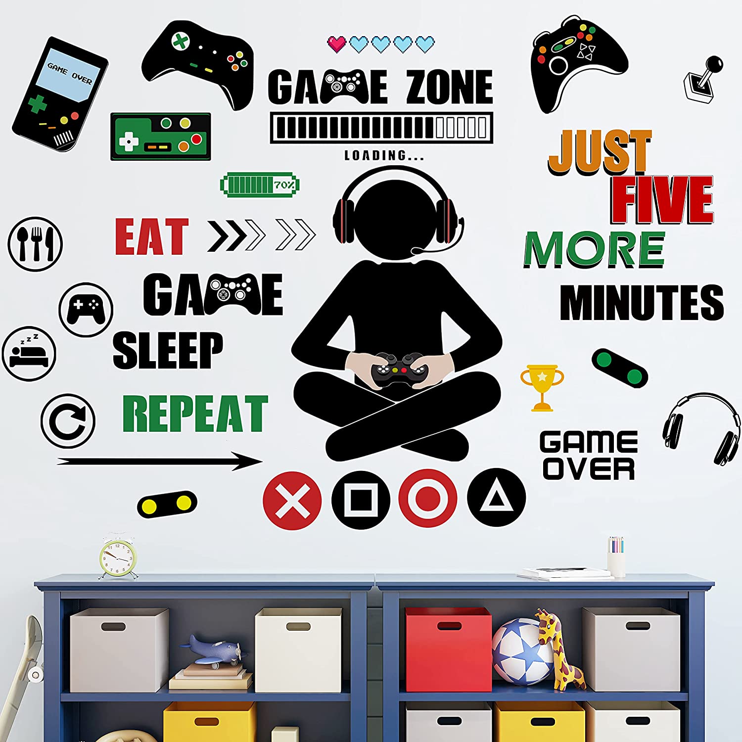 Gamer Wall Decals Stickers Game Wall Decals Colorful Gaming Wall Stickers Game Room Decor Eat Sleep Game Wall Decals Removable Video Game Decals for Boys Bedroom Kids Girls Playroom Nursery Decor