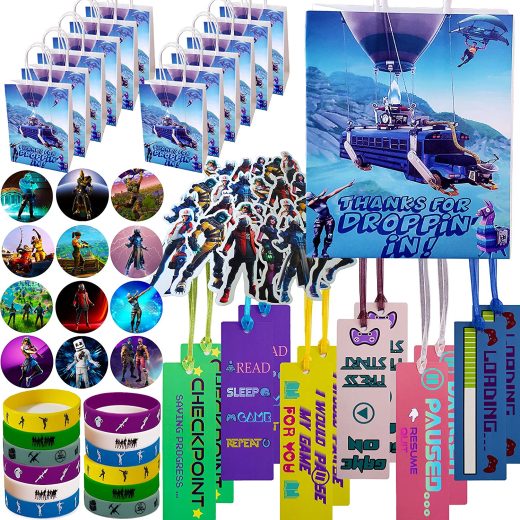 Gaming Party Supplies Set – 72 Pack Video Game Birthday Party favors set, Gaming Themed Gift Bags, Bookmarks, Badges, Bracelets & Gamer Stickers Decoration