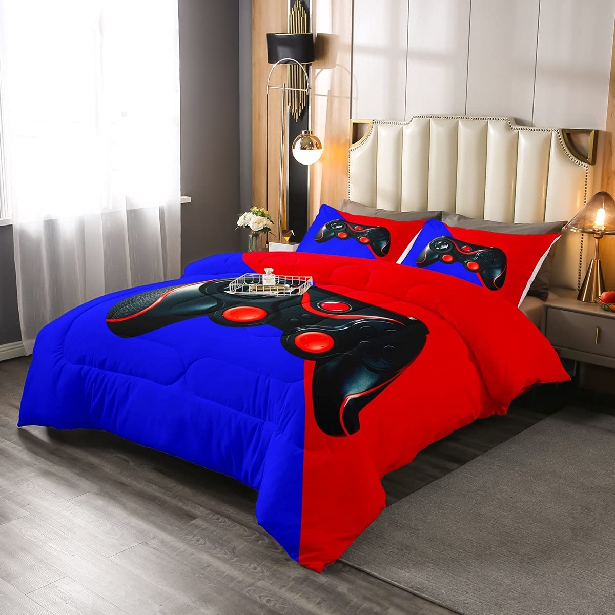 Gaming Quilted Duvet Red And Blue Video Games Gamer Comforter Set for Teens Kids Boys Gamepad Action Buttons Joysticks Duvet Insert Girls Children Game Room Decor Soft Bedding Comforters, Full