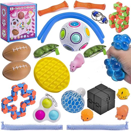 Fidget Party Favors – stocking stuffers toy.Anyone can use sensory fidget for kids, teens, These party favors for girls boys are a combination of sensory , which are loved by kids. The kids will become the center of attention at the fidget party with these party favors, These boys girls party favors can be used at any cheerful occasions, stocking stuffers for christmas ,thanksvising, Cheap 24pcs Christmas Fidget Pack : 4X Squishies, 4 X Stretchy String Fidgets, 2 Mesh and Marble Sensory Toys, 1 Fidget Pop, 2Xsimple dimple fidget 2 xWacky Tracks 2xSoccer Foam Ball, 1xcube 2xstress balls 2xSoybean Squeeze 1x rainbow magic bal 1xflip chains Stress Relief Toys: The Sensory Fidget toys set is great for ADHD, ADD, Autism, OCD, Quitting, etc.For fun Birthday Party Favors, Classroom Rewards, Carnivals, Prize Boxes, Piñata Filler, Stocking Stuffers, Goodie Bag Fillers. Suitable For All ocasion- These fidget toys are small enough for you to carry it anywhere. Most toys are pocket sized and highly portable, so that you can play at the office, home, church, libraries, station, in special education classrooms, therapy and sensory rooms, and on the way, even as travel toys. Keeps hands and minds busy for a long time. SERVICE – If you have any questions before your orders or after your orders, please feel free to contact us. Our customer support team is standing by to assist you.