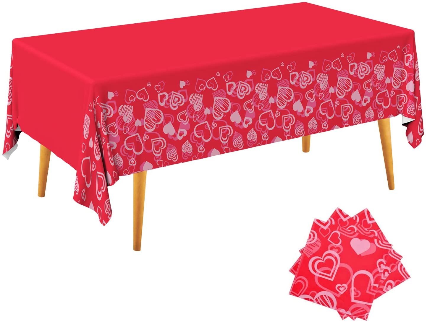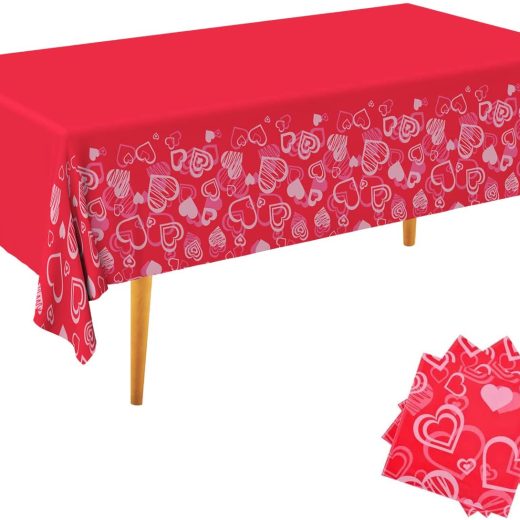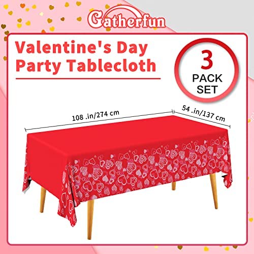 Gatherfun Valentines Day Hot Pink Heart Love Tablecloth Waterproof Plastic Rectangular Disposable Table Cover for Valentines Day, Engagements, Anniversaries, Birthday Party Supplies 3PCS 54×108 Inch