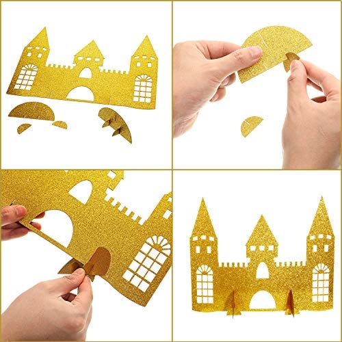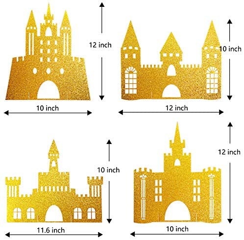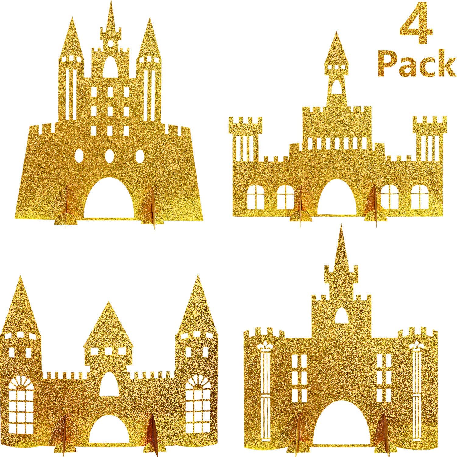 Gejoy 4 Pieces Gold Castle Table Centerpiece Glitter Princess Theme Castle Centerpiece for Birthday Baby Shower Princess Party Table Decorations