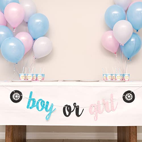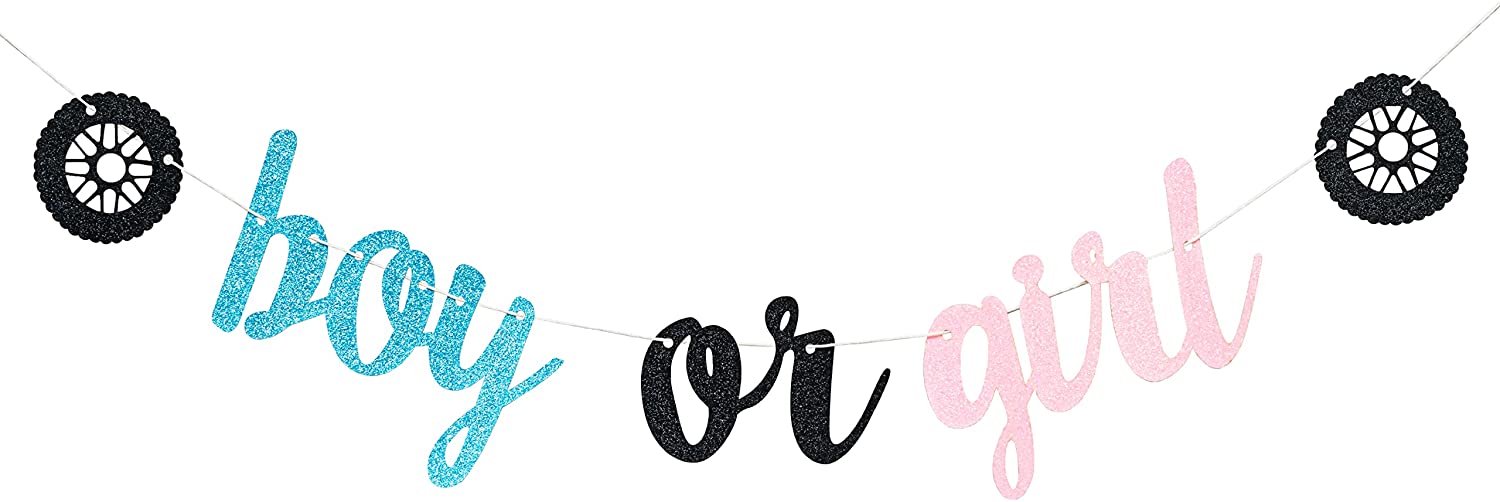 Gender Reveal Banner Burnouts Bows Wheels Or Heels Boy Or Girl Party Favor Glitter Decorations Supplies Sign Baby Shower Pregnancy Announcement Burnout
