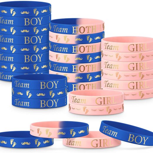 Gender Reveal Bracelets, Team Boy Silicone Wristbands Team Girl Gender Reveal Party Bracelets Team Both Rubber Wristband for Baby Shower Gender Reveal Party Favor Supplies (Elegant Color)