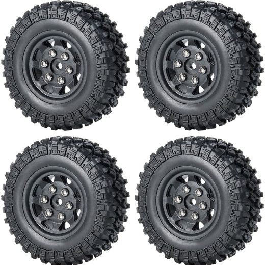 Product name: 1/24th RC Beadlock Wheel Rims and tires Good use for upgrade your 1/24th scale electric rock crawler car,Axial SCX24 AXI90081 or othe…