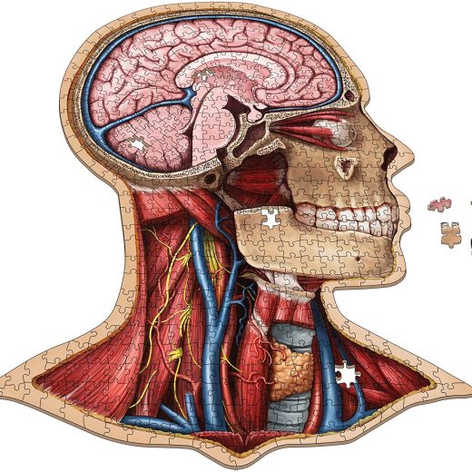 Genius Games Human Head Anatomy Jigsaw Puzzle | Dr Livingstons Unique Shaped Science Puzzles, Accurate Medical Illustrations of the Body, Organs, Brain, Skull
