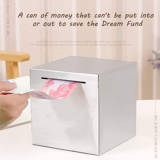 Materials: The piggy bank is made of stainless steel and has a large capacity.Because the piggy bank is difficult to open, It is recommended to open, it only when the target is completed or in some emergency situations .once the piggy bank is opened ,its also destroyed Surface drawing process:Surface finishing ,fine grinding and wire drawing process, Scratch resistance,strong hardness, corrosion and rust prevention of stainless steel The gap of import money: The size of large size is 12 cm which can store banknotes and coins at the same time. Sturdy and durable:It is made of stainless steel plate by laser cutting ,welding, grinding and wire drawing.