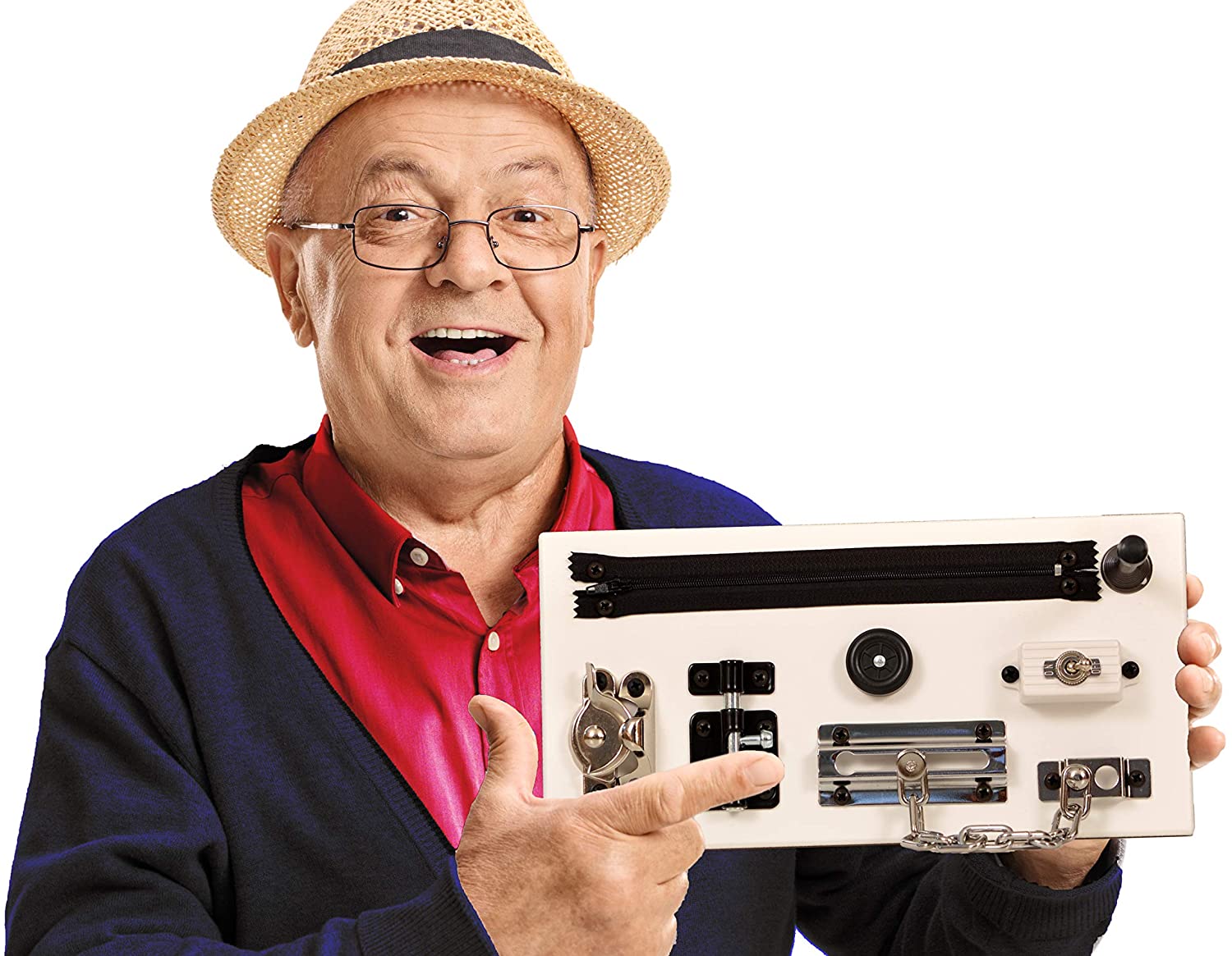 This Fidget Board Activity Center is the perfect solution to ALLEVIATE BOREDOM & help REDUCE AGITATION! Fidget activities will enable ‘RESTLESS HANDS’ to stay busy & in addition, SUPPORT HAND CONTROL, MUSCLE STRENGTH & FINGER DEXTERITY. People suffering from conditions such as Alzheimer’s or Dementia, can improve & preserve memory skills with these fun and engaging activities. This Fidget Board is also an amazing rehabilitation tool for patients who have suffered a serious injury or stroke. It helps restore fine motor skills in adults, improve concentration, and alleviate stress