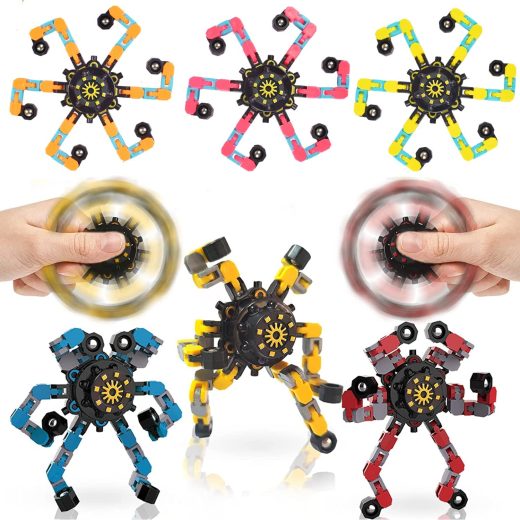 GESUOTU 6PCS Novelty Spinning Transformable Chain Robot Toy DIY Deformation Robot Deformed Mechanical Spiral Twister Fingertip Decompression Fingertip Toy for Kids Adults (B)