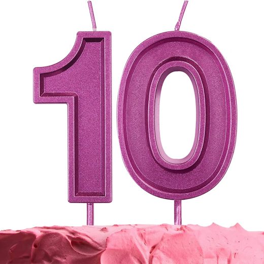 ? PREMIUM QUALITY ? – number birthday candles are made of smokeless material, as well as they are NON-TOXIC. Each purple 10 years birthday candle set is safely packed in individual box. ? ANNIVERSARY DECOR ? – GET FRESH purple number candles were designed specifically for anniversaries. This is not only a perfect tenth birthday candles decor for your cake, you can even mix all numbers from our store and find a number solution most suitable for you – whether it is for 10-year, 15-year or 80-year anniversary. Moreover, our number candles are available in 9 colours – gold, rose gold, silver, red, black, blue, pink, purple and rainbow. ? AVAILABLE IN 6 COLOURS ? – our anniversary number candles are available in 6 colours – gold, rose gold, blue, pink, purple and rainbow. Moreover, you can find any number you wish. Just visit our Storefront. ? BEAUTIFUL ADDITION TO ANY CAKE ? – our chic numeral birthday candles will complement any cake and will make this day memorable for you or your kid. These purple number 10 candles are of perfect size and quality for any birthday party as well as for weddings anniversaries, reunions and different theme parties. ? ELEGANT DESIGN ? – our ten birthday candles come in charming purple vivid color and glow brightly in the dark. They are easy to light and insert. This purple glitter number candle set serves as a great cake topper for any party celebration burning evenly and consistently.
