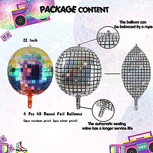 GGDE 8 Pcs Rainbow Roller Skate Balloons Boom Box Balloon 4D Round Shaped Foil Balloons 80s 90s Retro Theme Hip Hop Disco Fever Birthday Party Balloon Decor Supplies