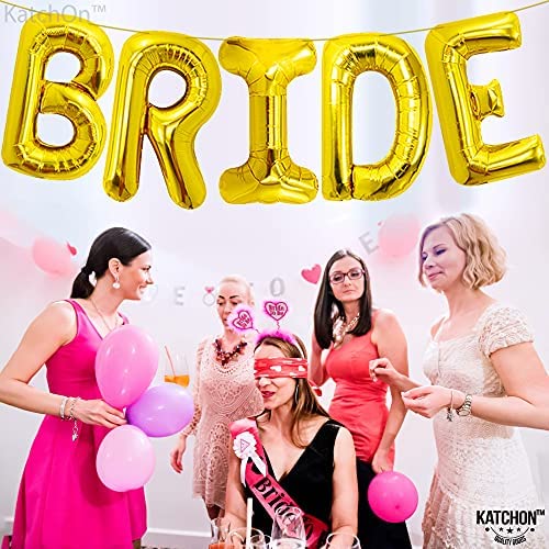 Giant, 40 Inch Gold Bride Balloons for Bride Decorations – Bachelorette Party Decorations | Bride Balloon Gold for Bridal Shower Decor | Gold Foil Bride Decorations for Wedding, Engagement Party