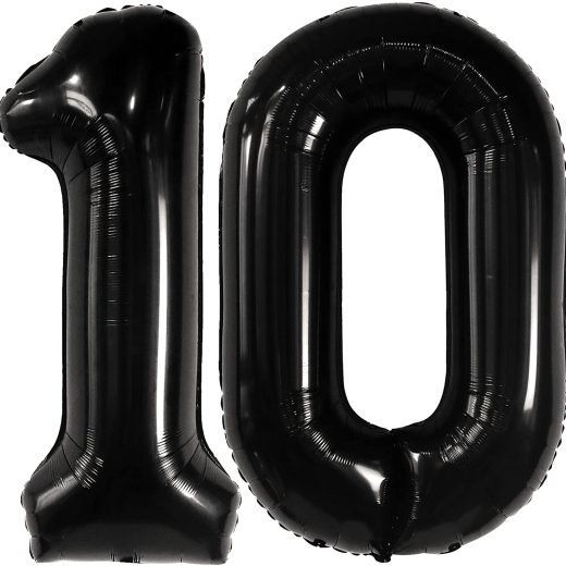 Occasion Anniversary, Birthday Color Black Number 10 Balloon Theme Birthday Material Mylar, Foil Size Large KatchOn CPSIA Cautionary Statement Choking Hazard – Balloon