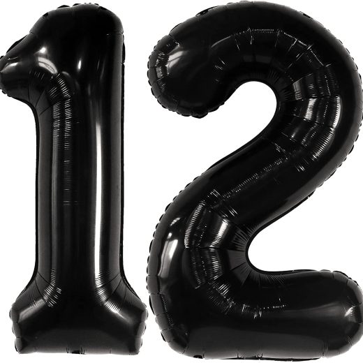Occasion Birthday Color Black Number 12 Balloon Material Foil Size Large KatchOn CPSIA Cautionary Statement Choking Hazard – Balloon