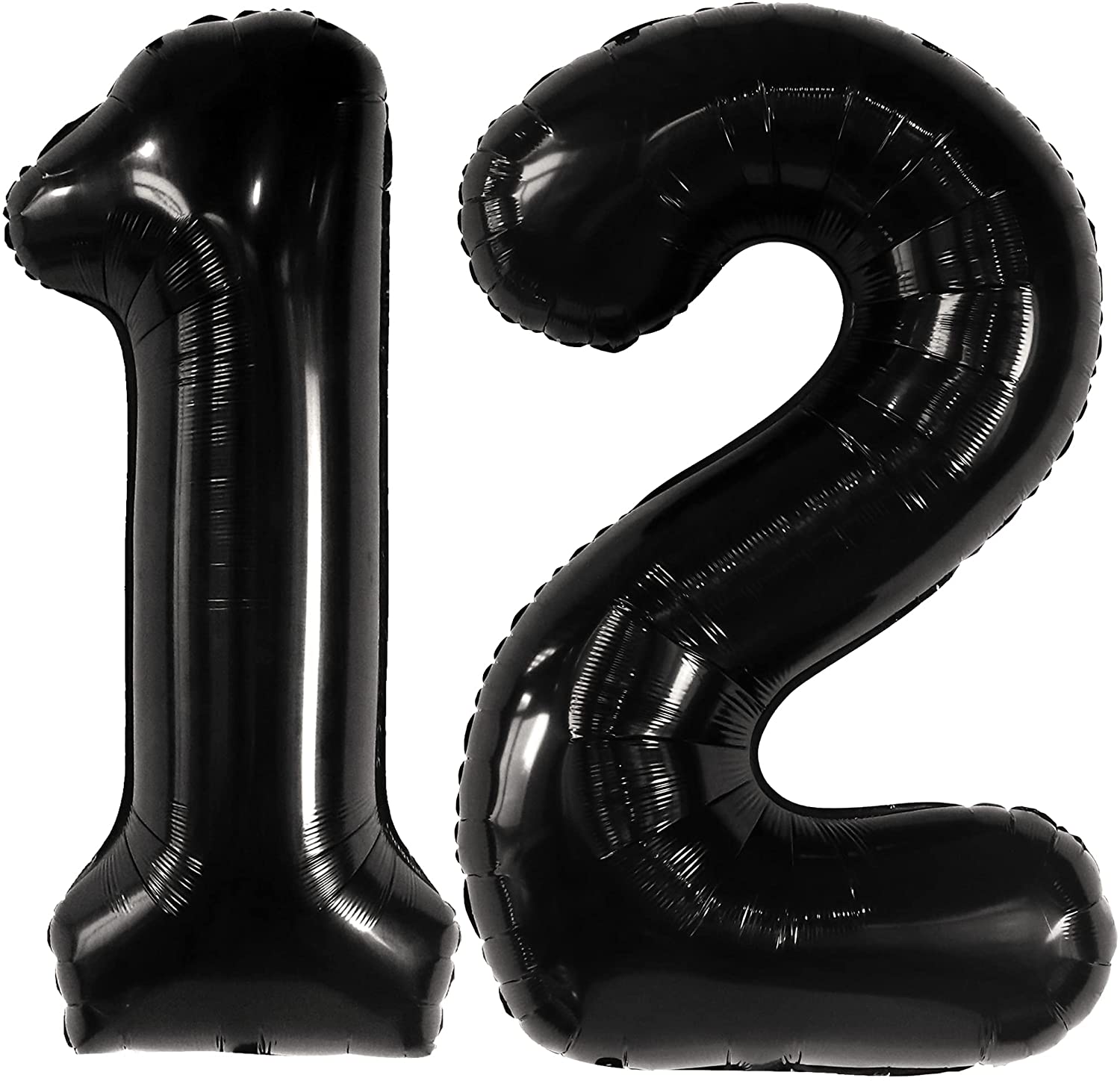 Giant, Black Number 12 Balloon Foil – 40 Inch | Black 12 Birthday Balloon, 12th Birthday Decorations | 12 Balloons for Birthday | Black 12 Balloon Number | 12 Year Old Balloon, 12th Birthday Party Supplies
