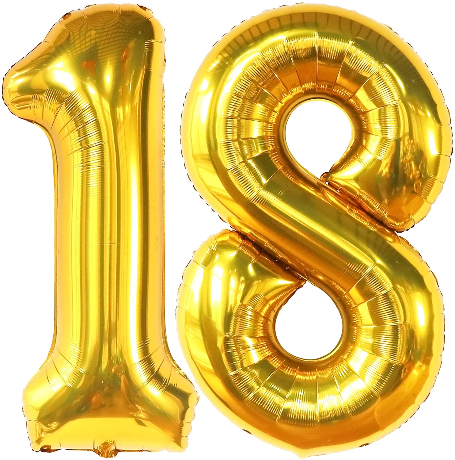 Giant, Gold Number 18 Balloon – 40 Inch | Gold 18 Birthday Balloon, 18th Birthday Decorations | 18 Balloons for Birthday | Gold 18 Balloon Number | 18 Year Old Balloon, 18th Birthday Party Supplies