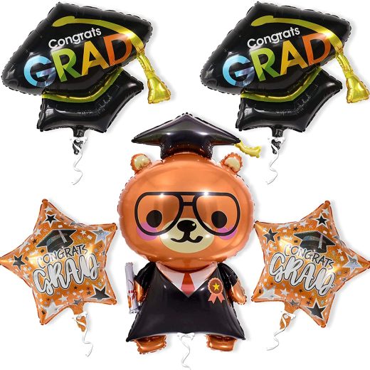 Giant Graduation Bear Balloon for Graduation Balloon Decorations -Inch, Pack of 5 | Congrats Grad Graduation Cap Balloons with Star Foil Balloons | Bear Shaped Balloons for Kindergarten, Class of 2022