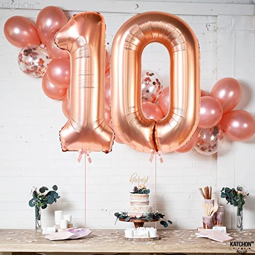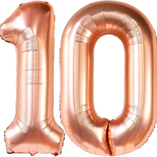Giant, Rose Gold Number 10 Balloon – 40 Inch | Rose Gold 10 Balloons Number Foil for 10th Birthday Decorations | Rose Gold 10 Birthday Balloon for 10th Birthday Party Supplies | 10 Year Old Balloons