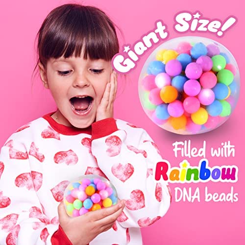 Giant Stress Ball – Big Squishy Toy with DNA Beads, Molecule Madness Rainbow Ball for Kids, Anxiety Stress Relief Sensory Fidget Ball for ADHD, Autism, Home, Travel and Office Gift (3.7in Diameter)