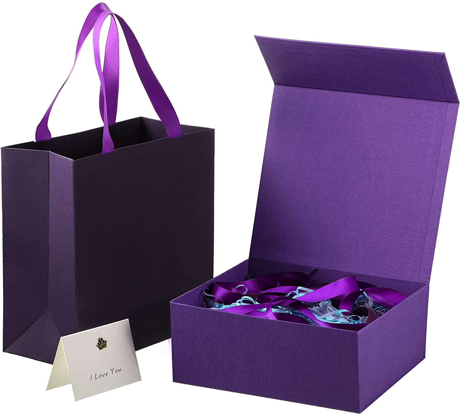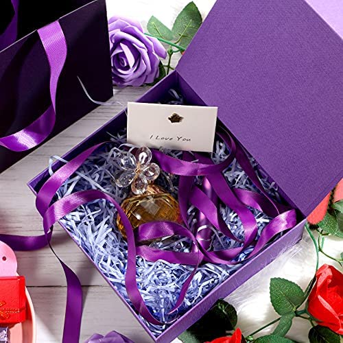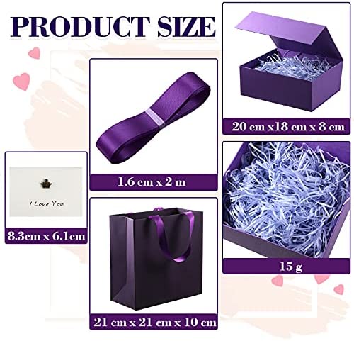 Gift Box 8 x 7 x 3 Inch,Valentines Day Present Box with Lid Paper Bridesmaids Proposal Box with Present Bag Card Ribbon Paper Filler,Gift Boxes for Presents,Wedding Birthdays Gift Packging (Purple)