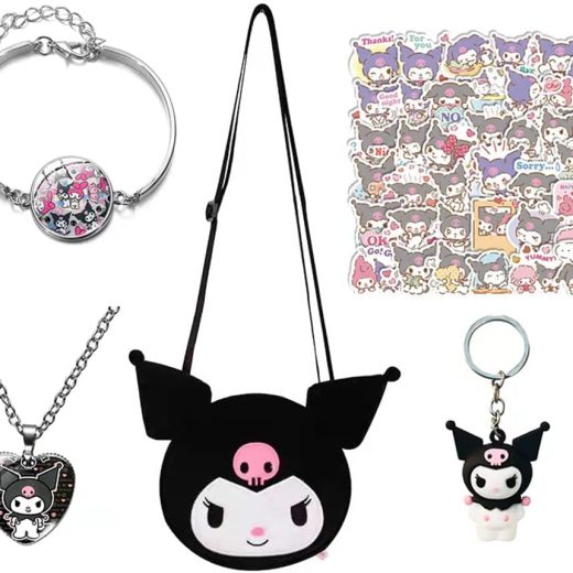Gift Set Shoulder Bag + Necklace + Bracelet Bangle + Figure Keychain Charms + Paper Stickers Party Favors