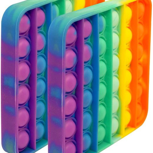 Giggle Time Bubble Push Poppers – 2 Pack – Sensory Fidget Toys – Relieves Stress & Anxiety, Autism ADHD Fidget Toys for Kids and Adults, Silicone Sensory Pods, 4.6 x 4.6 Inches Rainbow Color