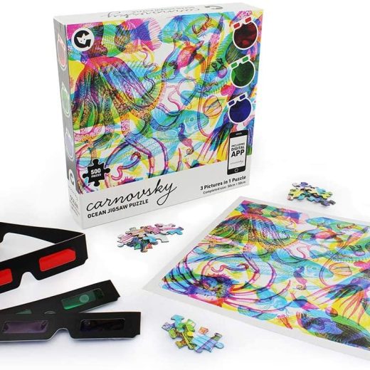 These beautiful jigsaw puzzles explore the interaction between colour and light through the visionary work of Carnovsky. Three different images sit…
