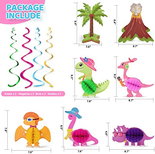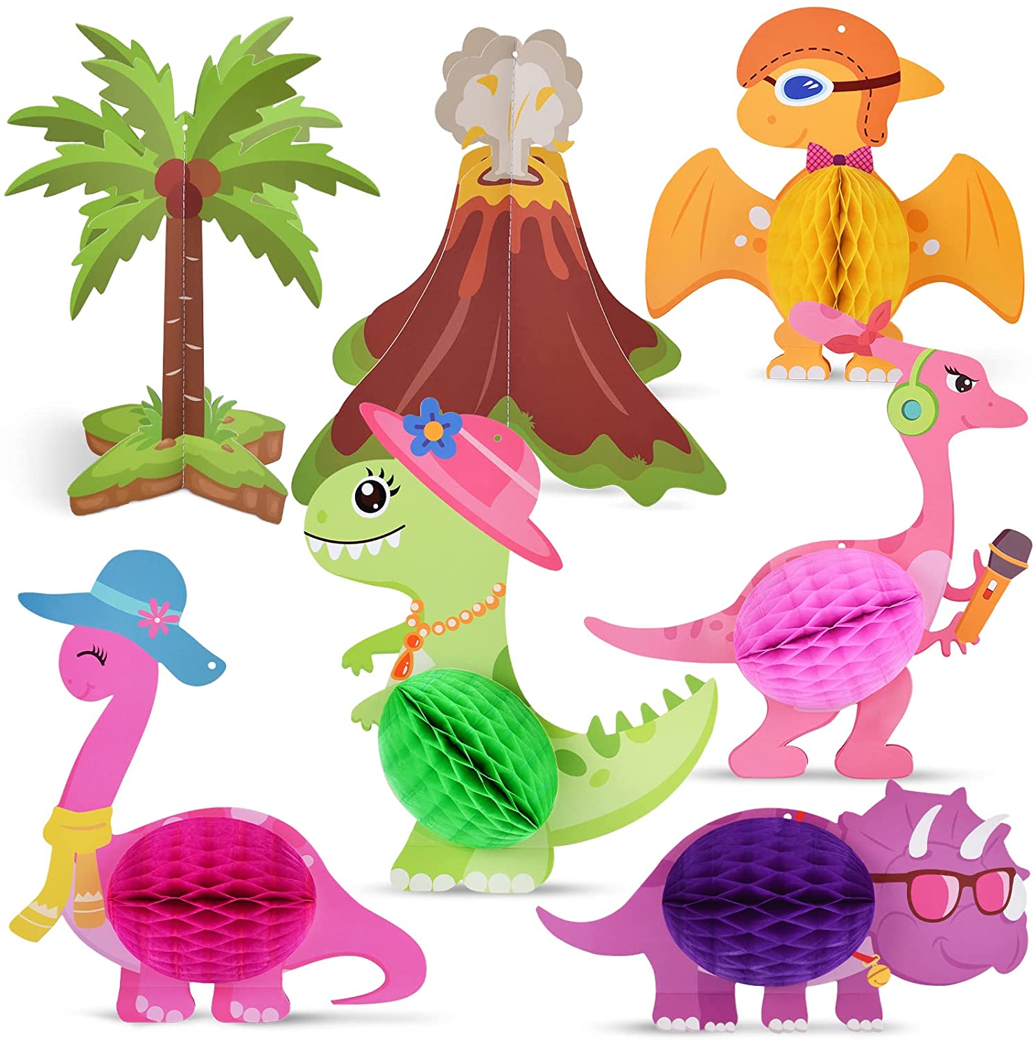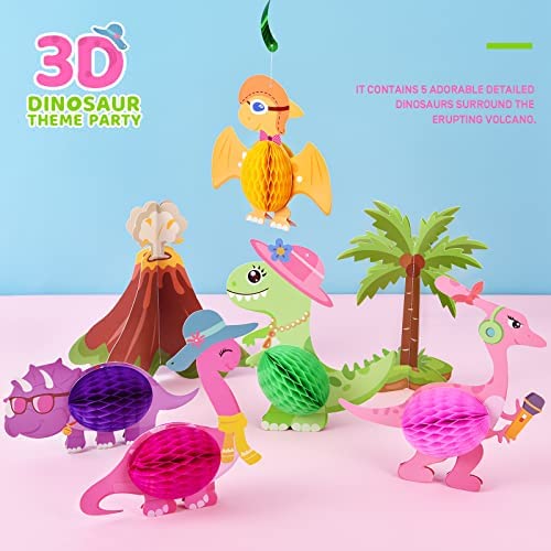 Girls Dinosaur Party Centerpieces – 7 PCS Dino Theme Party Decorations Table Topper for Kids Birthday Baby Shower 3D Honeycomb Centerpieces T-Rex Volcano Coconut Tree