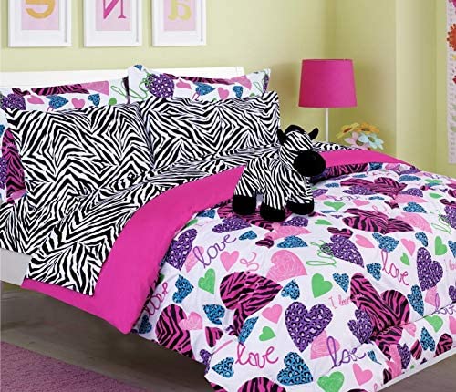 Be the first to review “Girls Kids Bedding-Misty Zebra Tween Teen Dream Bed in A Bag. Twin Size Comforter Set, Sheet Set and Plush Zebra Included-Love, Hearts-Hot Pink, Turquoise Blue, Purple, Black and White” Cancel reply