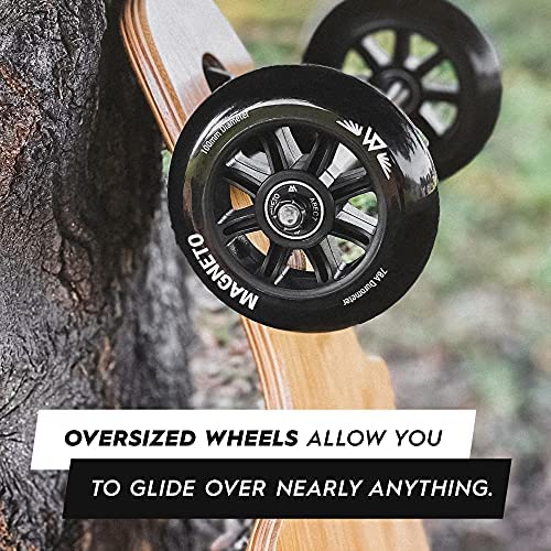 LARGE WHEELS & SMOOTH RIDE The large diameter 100mm x 25mm urethane wheels allow these boards to get over almost any terrain, rough roads, cracks, small rocks, stick or tree debris without the fear of getting bucked. If you have ever been thrown off your board because your wheel couldnt get over a small pebble you can now sleep peacefully! This is a true must have in your quiver.