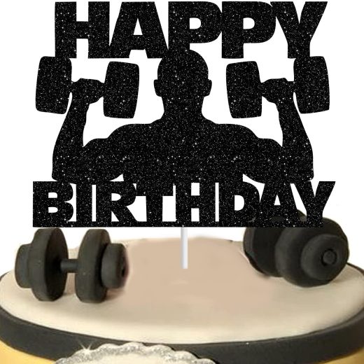 Glitter fitness Cake Topper – Gym Themed Happy Birthday Party Decoration Fitness Enthusiast Glitter Decor