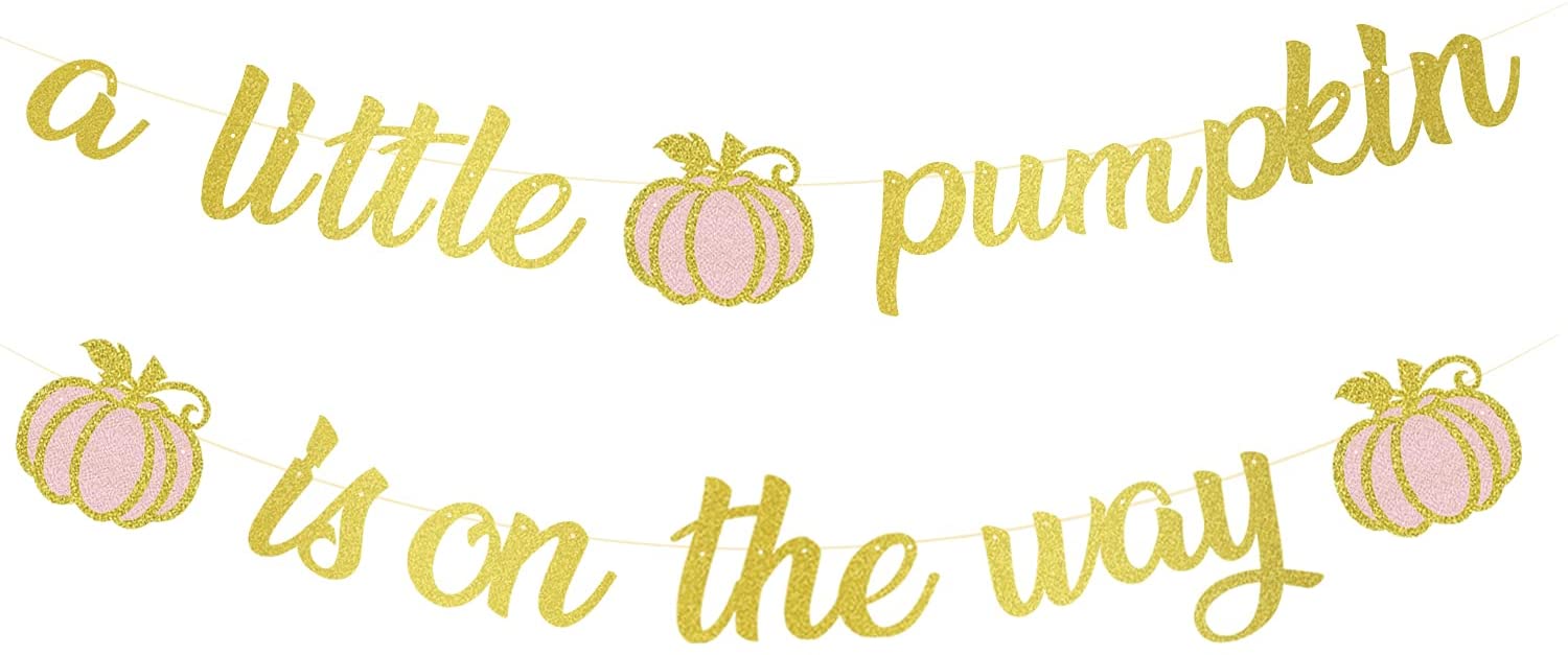 Glitter Gold A Little Pumpkin is On the Way Banner,Pumpkin Baby Shower Decorations,Gold Pumpkin Baby Shower Banner Girl,Baby Shower Gender Reveal Birthday Party Supplies,Fall Pumpkin Decor Pumpkin Decorations for Home (pink and gold)
