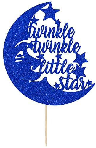 Glitter Gold Twinkle Twinkle Little Star Cake Topper Half Moon — Baby Shower First Year First Month Kids Birthday Party Decoration Supply Ideas