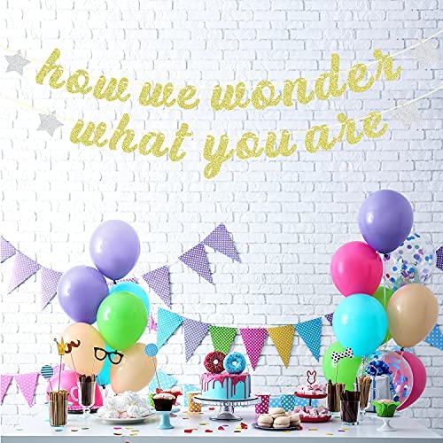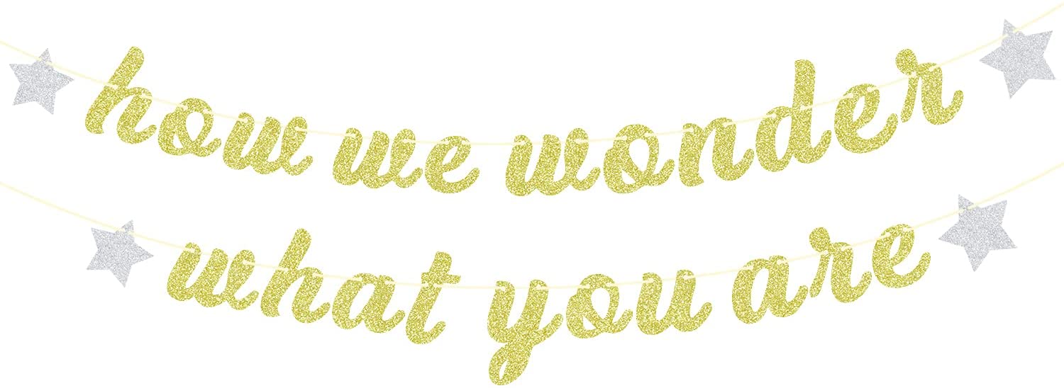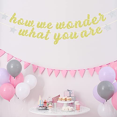 Glitter How We Wonder What You Are Banner, Welcome Baby Decorations, Gender Reveal, Baby Shower Party Decorations(Gold and Sliver)