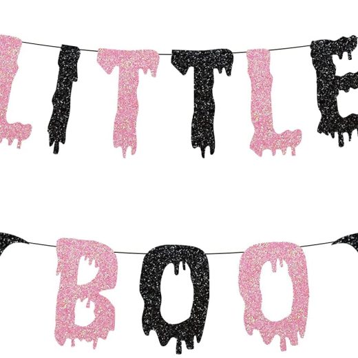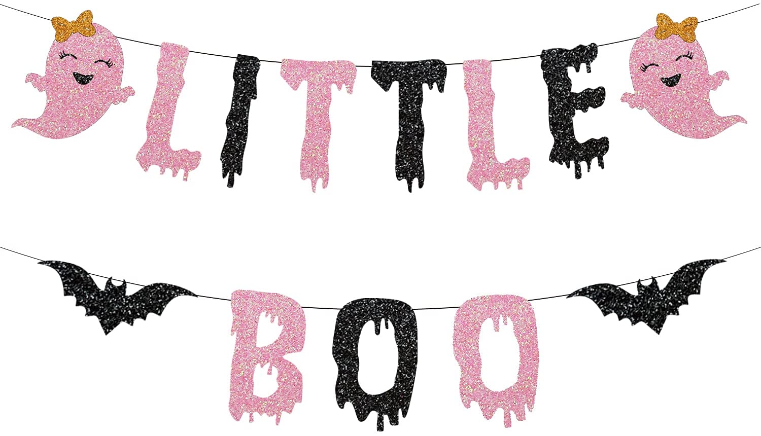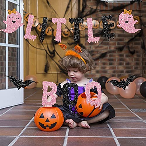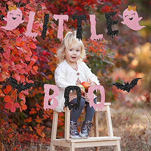 Glitter Pink Little Boo Banner Boo Garland,Bats Decor,Halloween Bats,Halloween Ghost for Halloween Girl Baby Shower,Little Boo Baby Shower Decorations,Pink Black Girl Birthday Party Banner
