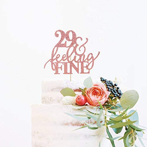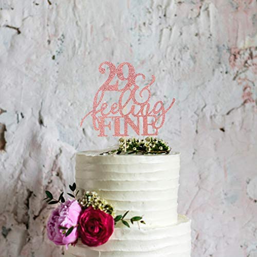 Glitter Rose Gold 29&Feeling Fine Cake Topper –Cheers to 29 Years Cake Topper -Anniversary or Vow Renewal Decoration Ideas