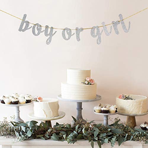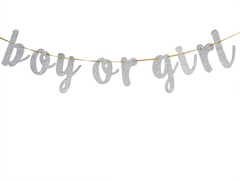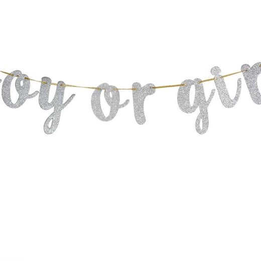 Glitter Silver Boy or Girl Banner – Baby Shower Prince Princess Birthday Gender Reveal Party Bunting Decoration