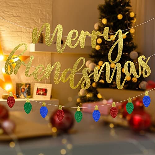 Glittery Gold Merry Friendsmas Banner and Light Bulb Garland Merry Friendsmas Party Decorations Merry Friends Themed Party Supplies Christmas Office Decorations Christmas Decorations Indoor Home Decor