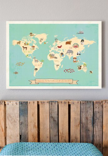 Global Compassion World Map 24×18 Print, Childrens Wall Art Map, Kids Animal World Map, Nursery Décor, Nature Themed Nursery, Nursery Wall Art, Kids Art, Kids Decor, Gender Neutral Nursery