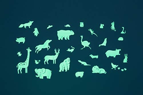 GLOPLAY Animal Series(29 pcs/Pack), Glow in The Dark Educational Wall Stickers, The Eco-Friendly and Brightest Wall Stickers for Ceiling, Bathtime, Bedroom, Party, Decor, Made in Japan