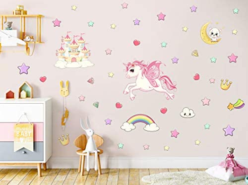 Glow in The Dark Stars Stickers for Ceiling,Unicorn Room Wall Decor for Girls Bedroom Decor,Kids Wall Stickers Unicorn Wall Decals for Girls Room Decor